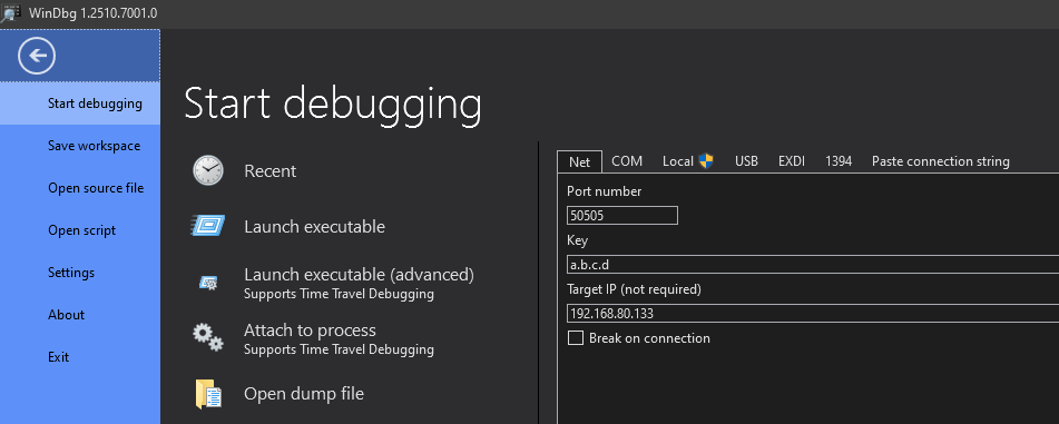 Key=a.b.c.dOnce through WinDbg (debugger VM) attach the tool with the debugge kernel: