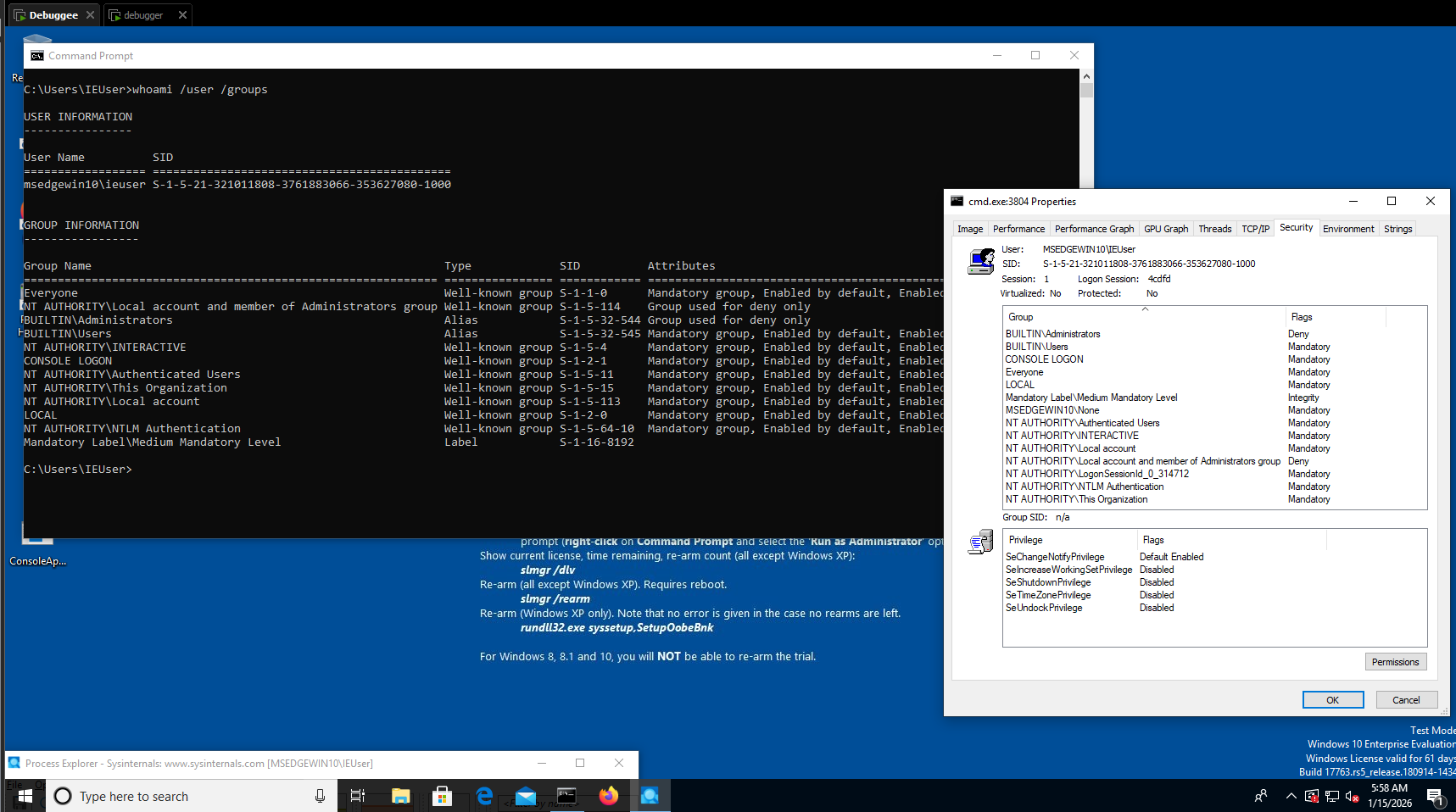 [+0x000] Value : 0xffffb38e918a38f8 [Type: unsigned __int64]Continuing with the token hijacking, take note of the ieuser token and the offset is located from the process address: